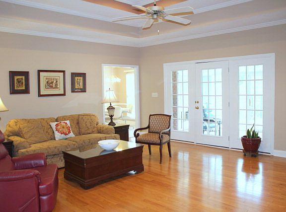 MOVE IN READY IN WEST LEE COUNTY! (1) 1 Level, Brick, 4 Bedroom Home on +/-1.03 Acre lot! (2) Open Dining Room with Cathedral Ceiling & Living Room w/ Trey Ceiling, Hardwood Floors, Fireplace & Recessed lighting (3) Separate Sun Room w/ AC, perfect play room or den (4) Kitchen with excellent counter & cabinet space, pantry & large deep drawers for storage (5) Laundry Room with additional storage (6) Split Bedroom Design (7) Large Master Suite with Walk-in Closet, Separate Tub & Shower & Double Vanity (8) 3 additional guest bedrooms with nice closet space & Guest bath with 2 Double Sinks (9) Double Garage w/ Large Storage Room (10) Established Landscaping, Private Fenced Patio, Pecan Trees & Bordering Green Space! Call for more information!