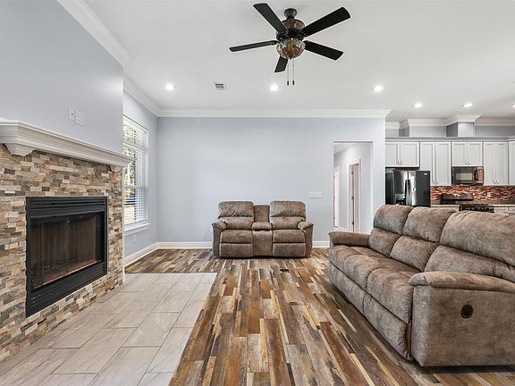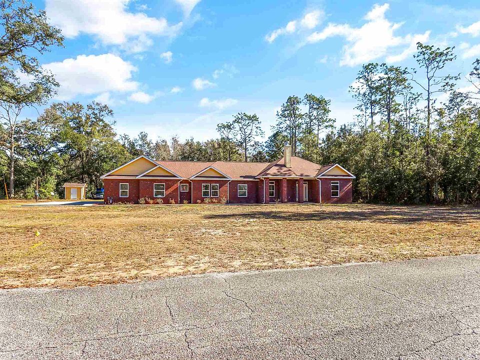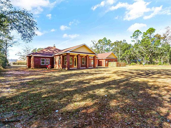 Never Lived in! Are you ready to fall in love with all the living area this Custom-Built home has to offer? Walking up to the home, you will notice the well-manicured landscaping and the inviting front porch. Upon entry, you enjoy a well-sized living room drenched in natural light, new vinyl flooring, soaring ceilings and a beautiful wood burning fireplace. The open floorplan also boasts a dining Area, large kitchen and a massive walk-in pantry. You cannot help noticing the luxurious custom, soft close cabinets, granite counters and wonderful eat-in island which compliment the kitchen and make this home a wonderful place to entertain or have family gatherings. The split floor plan provides privacy for the Master suite, with tray ceiling, 9-blade ceiling fan, two walk-in closets, an ensuite bath boasting double vanities, a lavish, walk-in tiled shower with seat and private water closet. All three additional bedrooms are nicely sized, one with private access to the hall bath. At the back of the home, find a large 16x24 Florida room, the perfect place to enjoy a cup of coffee or read a book while enjoying the private view of your backyard. Incredible quality of construction went into this home’s design with 2x6 wall studs for stronger framing, Rheem 4-ton heat pump, Rheem gas tankless water heater, spray foam insulation in roof and hurricane doors and windows. Other features include 10-foot ceilings, 36’” doors, 7” crown molding in all the right places, 2” faux wood interior blinds, wiring installed for whole home generator AND a 3 car garage with enough space to hold an extra-large Truck. Exterior features include a beautiful back covered porch, a well house, and a 12x24 storage shed. Your new home is tucked away, off the street, on 2 acres on a dead-end road. If you want privacy and a large lot, surrounded by trees, with NO HOA, this one is perfect! Convenient to I-10, NFCU, shopping, dining, and the BEAUTIFUL beaches of the Emerald Coast.
