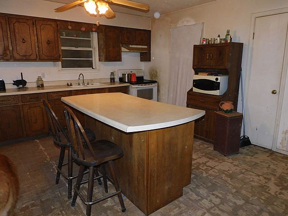 Nice welcoming front porch leads to the 3 bed/2 bath home just 5 minutes from beach access on the Kentucky Lake, needs rehab but with some TLC it's the perfect opportunity to make it your dream home! Large kitchen w/island opens to the living area and dining room, perfect for entertaining, add'l living space in the finished basement, upstairs there's a sunroom off of the primary bedroom, and 2 additional bedrooms. The backyard overlooks the large creek which feeds into the Kentucky Lake, enjoy the water views from the outdoor kitchen building which features a wrap around porch, also includes a large detached garage/workshop.