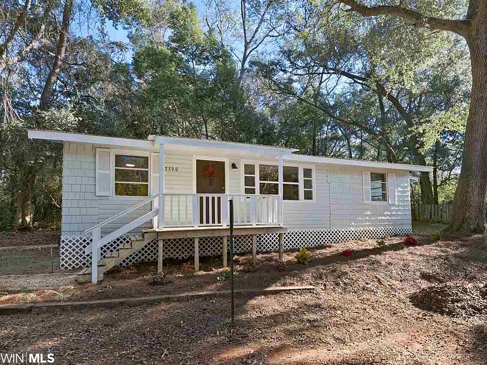 Newly remodeled three bedroom/ one bath home in Fairhope. Freshly painted inside and out, with real wood floors, this home is move-in ready. The kitchen and dining room are on one end of the house and the three bedrooms, and bath are on the hallway coming off of the living room. The metal roof and drop siding/ shake siding combination make for a charming and unique exterior, and the new parking area and landscaping add to the charm. Buyer to verify all information.