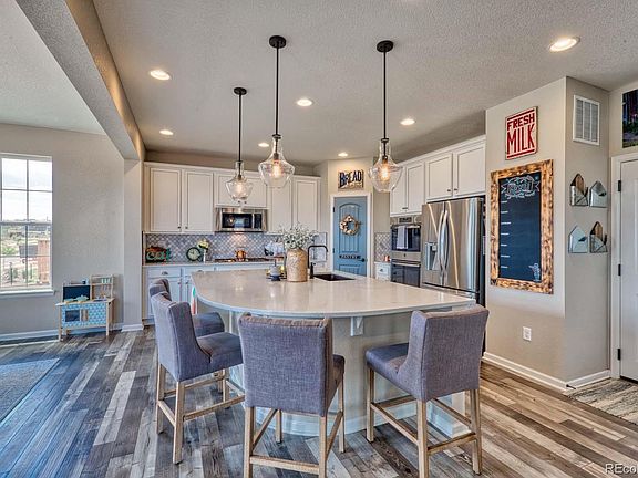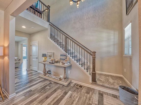 Stunning 2 Story in desirable community! Seller has an eye for design with upgrades around every corner. Highlights include extended multi-plank laminate wood floors, custom paint, custom light fixtures & a beautiful wood plank accent wall in great room with fireplace! Gourmet kitchen is sure to please with Quartz counters, natural stone backsplash, large island with breakfast bar & pendant lights, pantry & Stainless Steel appliances with gas cooktop opening up to the spacious, bright, vaulted sunroom with deck access. Main level also boasts an open concept study with built-in dual desk with shiplap accent wall & powder bath. Retreat to the upper level with wrought iron bannister and new carpet featuring a loft or relax in the private master suite with coffered ceiling, ceiling fan, 4 piece bathroom with a large euro glass shower, comfort height counters with Granite & walk-in closet. You will also find two secondary bedrooms share a full bathroom with tile floors & convenient laundry room. The full unfinished garden level basement is ready for your finishes. Enjoy the beautiful exterior with a deck & extended paver patio with firepit and built-in stone bench in the fully fenced yard. Great neighborhood community features miles of trails, multiple parks & just minutes from the highly acclaimed Cherry Creek Schools!