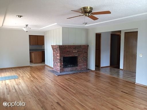 Living room with gorgeous refinished hardwood floors and wood burning fireplace, opens to dining area with french doors to large deck that wraps around the back of the house. Kitchen with all appliances in place (fridge, range, oven, disposal). Small built in desk area with storage off of the kitchen. Large laundry room with washer and dryer provided. The main level features the master suite with walk in closet, private bath, soaking tub and double vanity. One other bedroom and full bathroom on the main level. Step downstairs (could be great mother in-law quarters with garage level entrance) to the family room with wood burning fireplace, small kitchenette (counter, sink and fridge) and french doors to under the deck patio area. Two other bedrooms and one full bathroom on the lower level. Additional features of the home include 4 car garage with opener (1 & 2 side by side and 2 & 3 tandem), A/C, Central Vac system. No Smoking. Dogs and Cats allowed with additional depos (RLNE1866790)