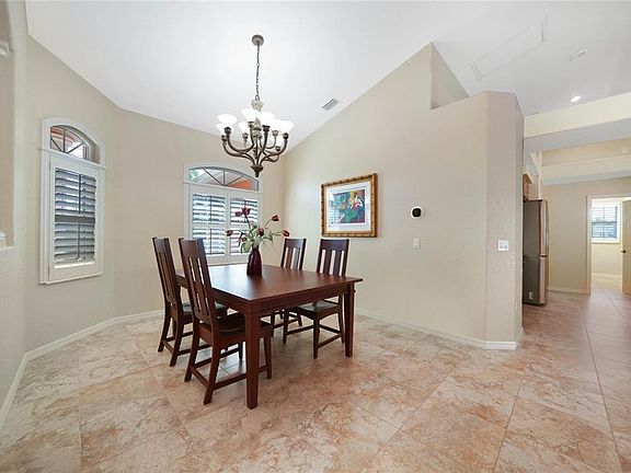 Move right into this updated home in Burnt Store Meadows. This 3 bedroom 2 full bath home has many updates to include tile flooring with porcelain tile in the bedrooms, plantation shutters on all windows, hurricane shutters (manual and electric), impact windows, new salt system for the in-ground pool, updated appliances, new double garage door with remote monitoring, and water softener system to name just a few of the many features that have been added. This split floor plan offers a master suite with a tray ceiling and sliders to the lanai and a full bath with a walk-in shower, soaking tub, separate vanities, and walk-in closets. Two guest bedrooms share a common hall/pool bath. The rear bedroom features sliders to the pool deck and the front guest bedroom is oversized! The kitchen is fully equipped and features granite countertops with a large dinette area. There is a formal dining room off the foyer entry and an open great room concept that allows you to extend your entertaining to the outdoors via the triple stacking sliders. The expansive lanai will not leave you feeling closed in! The pool decking is approximately 48 x 22 allowing for those extra pool chairs and chaise lounges. Not to be forgotten is the 3-car garage with added ceiling storage units. This active deed-restricted community is conveniently located to all major roads, shopping, support services, and the vibrant downtown of Punta Gorda. Call for your private showing today!