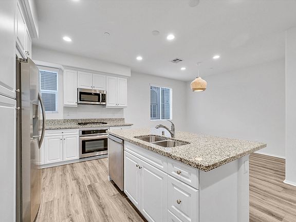 Located in the heart of Downtown Rancho Cucamonga, this beautiful, condominium is situated within the highly sought-after Day Creek Square community. Featuring upgraded laminate flooring, recessed lighting, and direct access to a spacious two-car garage, the main floor offers an open and inviting layout. The kitchen is a chef's dream, complete with a central island, brand-new stainless-steel appliances including a refrigerator, five-burner stove, microwave, and dishwasher. A convenient half-bathroom is also located on the main floor. The spacious patio is perfect for outdoor relaxation. Upstairs, you'll find three generously sized bedrooms, two full bathrooms, and a laundry area with a stackable washer and dryer. The community offers everything you need, including a pool and spa for family gatherings. Just a short walk from the upscale Victoria Gardens Mall, you'll have access to fine dining, shopping, and entertainment. The property is also minutes away from the Metrolink train station and located within an excellent school district, with some schools rated 10/10 and a prestigious 2019 National Blue-Ribbon Award.