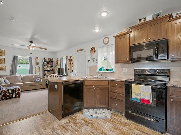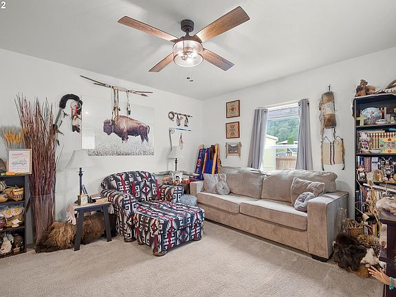 Barely lived in 2020 single wide with lots of upgrades! Come enjoy your new house with peekaboo Columbia River views seen from your huge back yard featuring a pond and fire pit. This 2 bed 1 bath house has a large kitchen, stackable washer and dryer, open floor plan solid wood cabinets and an oversize carport. There is just too many upgrade to list, must see for yourself!