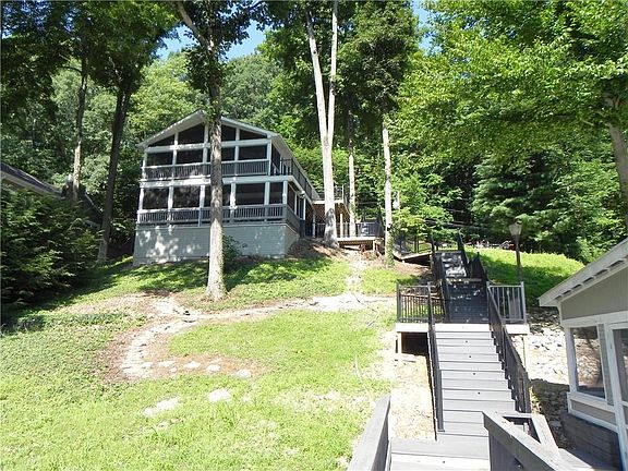 Lake Life Is The Best Life!! Home on Sweetwater Lake (one of Indiana's cleanest lakes) offers 3 lots of waterfront w/updates to multi-level decks leading down to party deck w/ 2 boat lifts, docks, jump platform for enjoying the deep water cove & screened lake shed to relax. Golf cart drive to dock & 10+ guest parking spaces. Enjoy the surroundings while sitting out on one of the two 30x15 screened porches. This furnished home has an open floor plan w/cathedral ceilings, updates: baths, kitchen cabinets, custom seating, SS appliances, wide plank flooring, carpet, newer 40 yr roof, HVAC & duct work, paint inside-out & more. Cozy up to the BC Stone fireplace in the family room or cook S'mores at the fire pit. It's all here for your enjoyment!