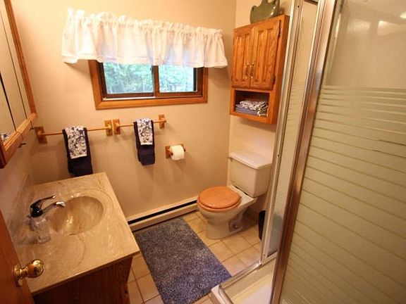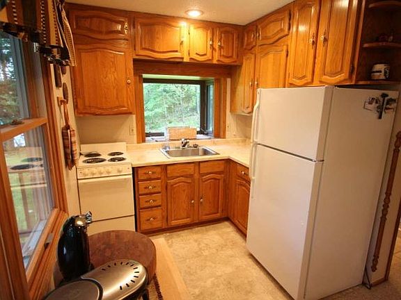 Squash Lake Year Round Cabin! Turnkey 3 bedroom, 2 bath cottage on 3.21 hardwood acres with 155 feet of frontage on a quiet bay. Thirty Thousand Dollars of upgrades have been done, including; new conventional septic, paint, floating dock, water conditioner, water heater, stove and refrigerator and landscaping! Also included is a 2 car detached garage with a shed.