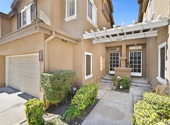 Beautiful townhouse with 3 bedrooms, 2.5 bathrooms, 2 car attached garage. Living room with high ceiling, gas fireplace. Formal dining room with custom chanderlier. Kitchen with tile floor, breakfast nook. Master bedroom with walk-in closet, master bathroom with dual sinks, bathtub and separate shower. Downstairs with laminated wood floor, carpet in bedrooms, tiles in bathrooms. Private lovely back yard with trees and flowers. Located in a small cul-de-sac street, peaceful and quiet. Very well maintained community with park, swimming pool and spa. Great location, close to Victoria Gardens and schools.