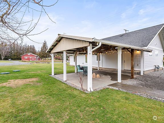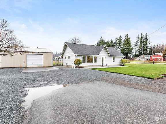 With views of Mt Baker this fully remodeled house sits on a shy 1/2 acre lot with a 24x36 shop. Home has been fully remodeled with no expense spared. Featuring vaulted ceilings and radiant heated concrete Mexican beech coral floors and AC from a mini split cooling system. Modern finishes that will delight the most discerning buyer. A large gazebo is right outside the back door for year round outdoor living. With over 10,000 sq. ft. of lawn you will have all the space you need to play and garden. Natural gas stove and on demand hot heater. House is quiet from the the new sound deadening glass windows. Corner lot with with access to Wiser Lake Rd. Attic is conditioned to store all your goods. Wired for backup generator with transfer switch.