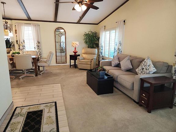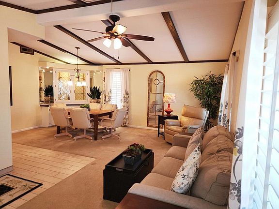 Great curb appeal and pride of ownership! Lovely 2 bed/2bath 1780 sq ft home, is being offered Furnished/Turnkey including a Golf Cart. Extensive updates with modern decorative touches have been added. Gourmet kitchen w/soft close cabinetry, nice size Island, breakfast bar, beautiful granite counters, stainless-steel appliances, and recess lighting throughout. The extra-large main bedroom suite has a huge walk-in custom closet and includes a safe to keep your valuables safe. The remodeled spa like bathroom with separate sinks and a nice size bathtub is sure to help you relax. Shutters and designer drapes adorn the large windows. Also included is a tank-less water heater, ceiling fans and newer A/C. There is so much to this special home you just have to see to appreciate! Still on tags for possible tax saving opportunity! You OWN the land and the low $351 monthly HOA fee includes FREE Golf, Cable TV, Internet, trash removal and 24/7 Guard Gate Security and so much more! Palm Desert Greens Country Club is one of the nicest and most popular 55+ communities, nestled in the heart of the desert near many of the area's great golf courses, parks, hiking trails, restaurants, shops, casinos & events. Truly one of the best buys in the Valley!