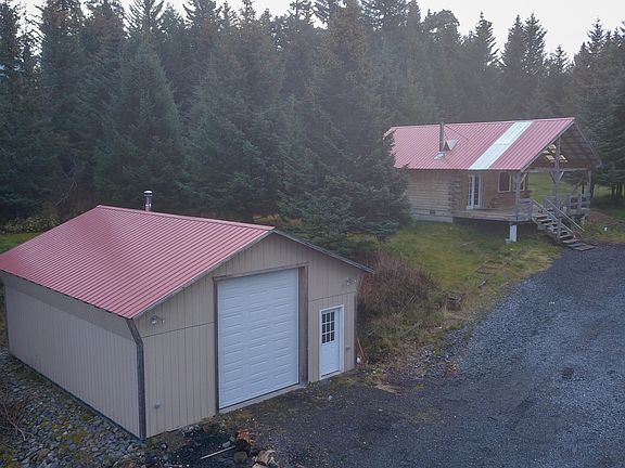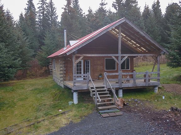 Located just minutes from the Anchor river is this quaint 1 bed 1 bath four sided log home with a spacious loft and shop. Sitting to one side of the 1.21 acre lot allows for expansion or kept for privacy. Both shop and house are heated with wood stoves and the water softner in the basement services the on-site well.