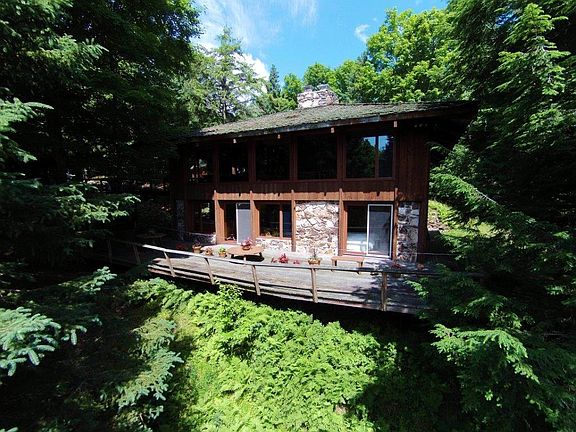 Golden Opportunity to be on "Wisconsin's Most Beautiful Lake" (Milwaukee Journal), with 25 miles of shoreline, 23 islands and crystal clear water it is a rare opportunity. Now add 7.78 Acres and 472 ft. of sand and stone frontage, awesome views and towering trees. This rare, private parcel offers a custom home, a great gazebo, and four car plus garage with a guest cottage above. The homes exterior is tastefully finished with cedar and drift stone. The interior offers an open concept great room with butternut walls, cathedral ceilings, pegged Bruce Oak flooring, and a stone fireplace reaching to the ceiling. The windows stretch floor to ceiling letting you feel the towering trees and breathe taking views. The kitchen offers 4'' bird's eye maple counter tops and the lower level rec room also offers and additional fire place and lots of glass showing off the perfect privacy. A rare opportunity as most homes on Crab Lake are kept in family for generations.