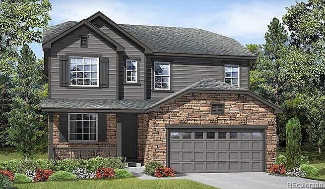 Located in Serenity Ridge this home is the full package. Included is a covered front porch, great room with tile fireplace, mudroom with powder bath, upper level laundry room, walk-in closets in secondary bedrooms, and a deluxe master bath; which includes shower and tub on a walk out lot. Serenity ridge is conveniently located close to Southlands Mall, close to DIA, and Aurora Reservoir. Interior finished are handpicked by our professional design team.