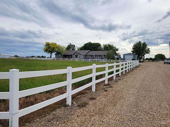 Gorgeous Country Ranchette.   Just minutes off of I - 84 exit 3 and approx. an hour to the Boise airport.  When you walk up the front walk and into the front door there is a warm comfortable feeling. There is an arena area and fenced and cross fenced pasture for your livestock, 4H or FFA animals.  Horse barn with stalls and storage room for tack and a hay storage area. Room to park all your trailers and to get in and turn around easily. Sprinkler irrigation system, fruit trees and all of the fencing already in place.  Firepit, gorgeous garage doors, stamped patio, and slab in back for pickle ball.  Views of the hills, mountain ranges sunrise and sunsets all from this property. Grab your dream country acreage while it lasts. This home was built as a super good cents home! Granite, tile and hard surface countertops, wood floor entry and engineered wood floor in kitchen and dining.  Great location and what a view front and back.  Pellet stove in the family room.  This home has wonderful basement spaces.