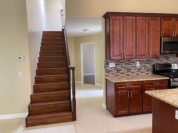 Beautiful two story home. 3 bedrooms, 3 bath with nook for office/den. Gourmet Kitchen with Large White Tile. Two Master Bedrooms, one downstairs with bathroom and one upstairs with bathroom. Third bedroom downstairs also. Open Stairway enters to Kitchen and Living Room. Two Car Garage. Enclosed secure back area with lemon tree. This home is Fully fenced with security gate. Available now for you to celebrate the Holidays in this beautiful home. Owner pays trash.