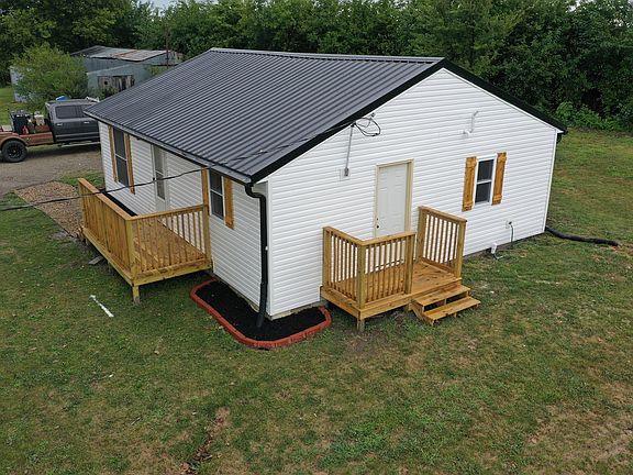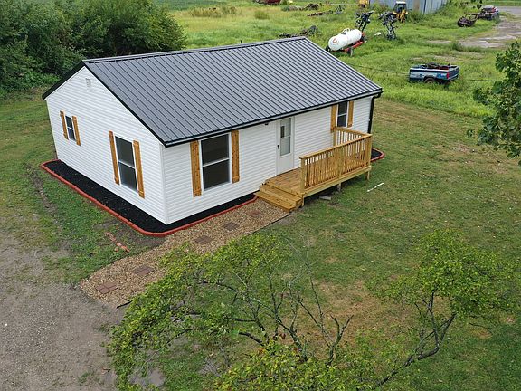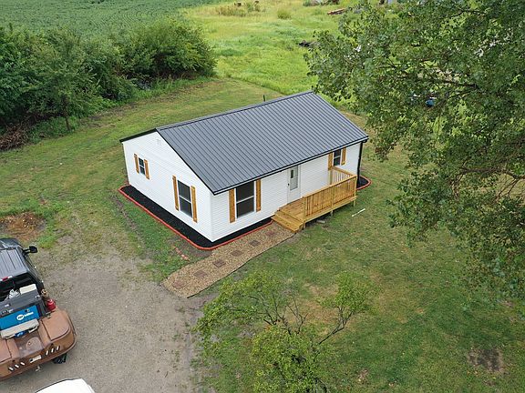 This quaint 2 bedroom, 1 bathroom ranch style home is a perfect place to call home for someone who wants out of town! It has been taken down to the studs and received a full renovation from the outside in. As you walk into the door you are greeted with an open living and dining area with a couple of large windows that give it great natural light. The kitchen has a sleek new look with slate gray cabinets, white subway tile backsplash, farmhouse sink & stunning custom butcher block countertops. The bathroom is right off of the kitchen and has a very clean looking sliding barn door that opens up to a large space. The bathroom features a walk in shower, tankless instant water heater that services the house & washer and dryer hookups. On the exterior, a new tin roof & guttering, fascia & soffit, siding, doors & windows & 2 new decks have been installed. In addition, a brand new HVAC system has been put in with new ducting throughout the house. On the interior, new electrical, plumbing, lighting, sheetrock, flooring, interior doors, trim, cabinets & vanity, & so much more have been installed.