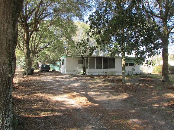 PERFECT Rental, Starter or Retirement Home close to public boat ramp on Bystre Lake. Two bedroom, two bath split plan on private 1/2 acre lot. Single wide mobile home with additions is solid with good metal roof, floors and CHA. The owner says the water heater is less than a year old and the wiring is up to date. The fully fenced yard is full of giant oaks and citrus trees providing plenty of shade while keeping your utility bills low. Then there's the workshop for the handy Man or Woman in your life! It has electric (both 110 & 220 was well as water and concrete floor. Needs a little TLC but has good potential.