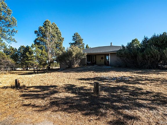Come home to real living amongst the pine trees! Nature and privacy galore. This property is five acres of land offering towering pines, a corralled area for farm to table garden and room for your loving critters. Property features a domestic well and extra water hydrant for your convenience and plenty of room for greenhouse, shop, and barn. Cozy and spacious 3 bedroom, 3 bath country ranch home with a simple rustic feel and partial barn wood decor in living room. Complete with a garden level basement and two and half car side load garage with mud room entry. Large eat in kitchen with island, sun room and hot tub area. Bonus rooms and plenty of space for your home office and/or hobby creations. New class 4 roof with steel gutters. Newer exterior and interior paint and carpet with Karastan padding upstairs. Septic use permit in place for new Buyer. Easy commute to Denver and Colorado Springs. Approximately 8 miles to Town of Elizabeth or Kiowa. Elizabeth school bus picks up in neighborhood or enroll with Kiowa for four day system. Make this your private sanctuary with beautiful eastern sunrises from back deck area and gorgeous sunsets from your front porch! This home and land is just waiting for your personal touches! Call for your private showing or virtual tour by appointment only with CDC guidelines. 24 hour notice required.