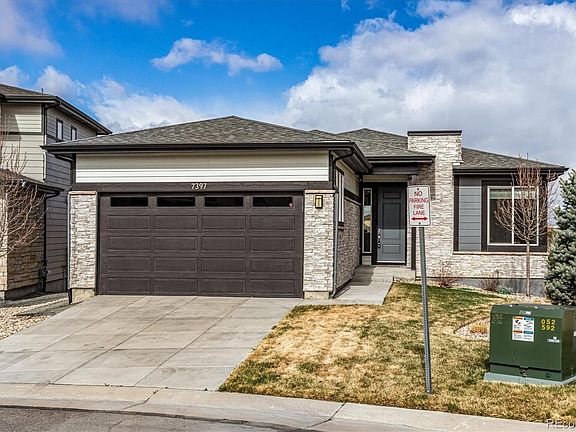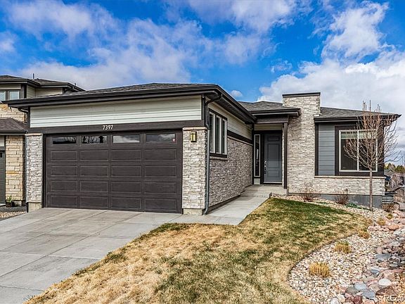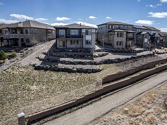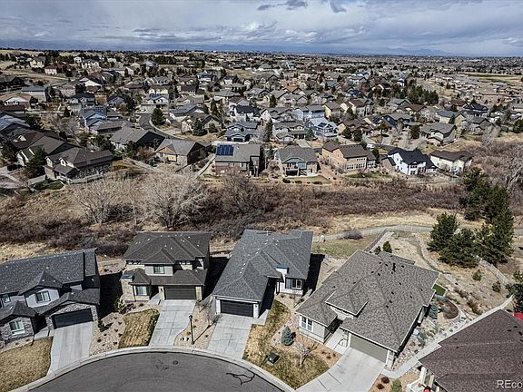 Situated on a quiet cul-de-sac in the sought after Saddle Rock Community, this home backs to open space and walking trails. Surrounded by expansive mountain views including Longs Peak. Step into your new home through the covered front patio to a grand entry that leads to the open concept living, dining, and kitchen. 9ft ceilings and oversized windows add elegance to this open and airy space, flooded in natural light. Large kitchen boasts stainless steel appliances, wall oven, gas cooktop, quartz countertops and marble backsplash. Entertain in the dining area, at the kitchen island, or on the spacious deck. Enjoy majestic mountain views and spectacular Colorado sunsets from almost any room in the house. Curl up by the fire on a winter evening in the main floor great room, complete with a stunning custom dimensional tiled gas fireplace, built-in shelving, and recessed TV wall. The primary suite includes a three-piece bath with custom shower, oversized walk-in closet, large double sink vanity with loads of counter space, and a private toilet room. The main floor of this gorgeous home also includes a full bath, laundry room, mudroom with access to the oversized two car garage, and a secondary spacious bedroom with a large closet and near floor to ceiling window. The walk-out basement features the home's 3rd and 4th bdrms, full bath, half kitchen with wine/beverage cooler, and enough living space to have a huge family room, playroom, and full bar. Walk out to a covered patio which overlooks Piney Creek open space and walking trails below. Pool, clubhouse, tennis, parks, are only some of the many amenities this friendly community offers. Nearby Saddle Rock Golf Course, Aurora Reservoir offer even more outdoor activities.In the coveted Cherry Creek school district, conveniently located to both E-470 and I-25, surrounded by nature and mountain views, this newer build (2017), immaculately maintained, and move-in ready home won't last long.