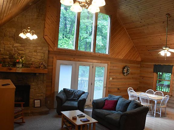 Stunning Hand Crafted Log Home with Full Length Covered Porch with walkouts on 3-Levels Overlooking 10 Secluded Wooded Acres only 1.5 miles from Lake Lemon and just minutes to Bloomington and IU. Open Great Room with Majestic Vaulted Ceiling featuring Brown County Stone Hearth Fireplace. Master Suite on Main Level and 2 Additional Suites on Lower Level with Full Baths and Walkouts to Covered Rear Porch. Home has been in service as a weekend cabin rental generating good cash flow. Vacation Rental Company projects 200 days rented at $300/day.