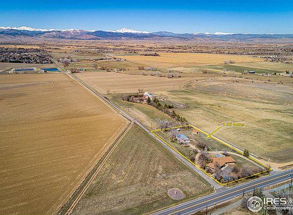 An absolutely incredible opportunity to own a VERY private, 2 acre paradise in the heart of Boulder County with breathtaking views of the back range, snow-capped mountains. This property features a 3 bedroom ranch style, brick home with a stunning modern kitchen, formal dining area overlooking a covered patio & fenced in yard with exceptional mountain views. If you're looking for more space you'll love the huge outbuilding/workshop. The possibilities are endless! The building is heated/cooled, has an office space & large gathering room. If you work from home, you'll enjoy the additional detached office studio - which has direct, up-close views of Longs Peak. The current owners have turned this into an amazing oasis with an orchard of fruit trees planted in the back yard, gardens and quiet & serene meditation spaces. Please be sure to view the 3D Matterport walk-through tour of the home & the pictures of the sunsets!