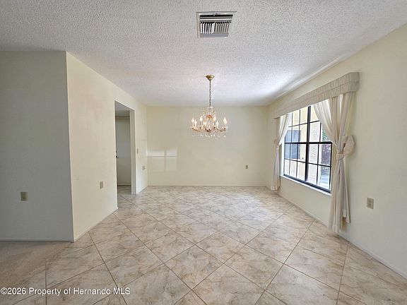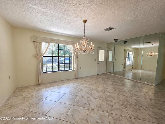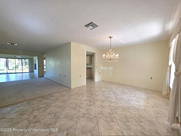 Very spacious end unit villa with beautiful golf course views. The formal dining room greets you at the start. The flowing floor plan in the living area has many windows for loads of natural light. With a living room and two family rooms, you have plenty of space. Both bedrooms are spacious. Golf cart storage around the back of the home. Roof installed 2025. Schedule a showing today! Timber Pines, a 55+ Gated Community, With 4 Golf Courses, Country Club, Remodeled Restaurant And Bar With Multiple TV Screens, 2 Pools, Fitness Center, Tennis And Pickle Ball Courts, Bocce Ball, Billiards Room And More Than 100 Different Clubs. Spectrum Cable, 2 boxes and High-Speed Internet Are Also Included In the HOA.