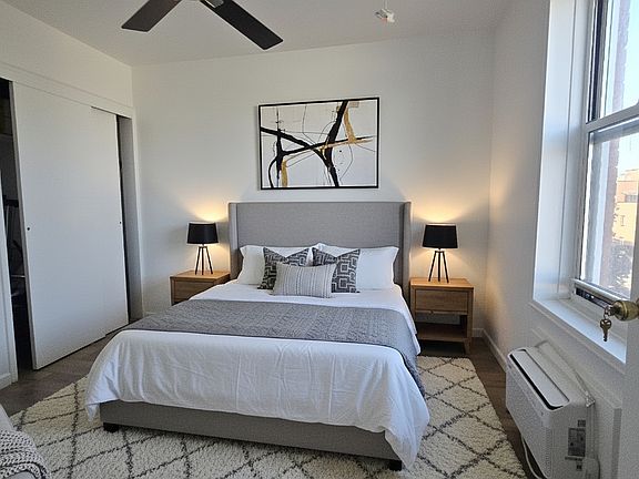 Second Queen size bedroom with large closet, new AC unit and a ceiling fan, same natural light and open views