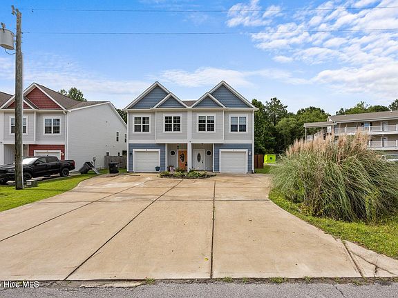 Welcome to your dream home in one of the area's premier townhome communities, ideally situated just minutes from Camp Lejeune's back gate, Stone Bay, MARSOC, and the pristine shores of the Crystal Coast. With world-class beaches, top-rated dining, and endless entertainment at your fingertips, this location offers the ultimate in convenience and lifestyle. From the moment you arrive, you'll be captivated by the curb appeal, a welcoming covered front porch, and a 1-car garage. Step inside and fall in love with the spacious, light-filled interior featuring 9-foot ceilings and beautiful LVP flooring that flows seamlessly throughout the open-concept main living area. The thoughtfully designed kitchen features crisp white cabinetry and stone countertops, and a functional layout that seamlessly blends style and practicality—perfect for home chefs and entertainers alike. Just beyond the bright and airy living room, you'll step out to a private, fenced-in backyard complete with a covered patio, ideal for sipping your morning coffee or unwinding after a long day. This home offers the perfect blend of comfort, convenience, and coastal charm. Upstairs, you'll find three generously sized bedrooms with ample closet space, including a luxurious primary suite featuring vaulted ceilings, a large walk-in closet, and a spa-inspired ensuite with dual vanities and a walk-in shower. This home is a standout in both design and location. Schedule your private tour today and experience the best of coastal Carolina living!