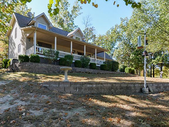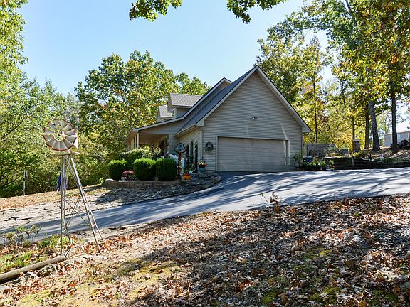 Beautiful view from every room! Sit on the porch and watch the boats go by! Very well kept home sitting on 0.9 acres. Downstairs has open kitchen, living & dining, master bedroom/bath, and laundry room. Upstairs has 2nd bedroom, full bath, loft, small finished storage area and unfinished storage over garage. Both bedrooms and loft have walk in closets. Circle blacktop drive, storm shelter, greenhouse, workshop, storage shed with lean to, and an established garden area outside makes this the perfect home with awesome views! Take a golf cart ride to your 10x24 boat slip for an additional $30,000 or just boat launch just around corner.