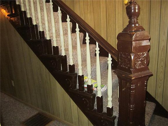 Side by Side with access through main floor could be one large home. Side on right is very good condition - new carpet, nice classic bannisters from yesteryear-large 2 bedrooms and large bath upstairs. Left side needs work - has large kitchen, living room, bedroom...and upstairs major rehab work. Get out your hammer and nails and make this home your own. So much less than rent! Back garage not usable - do not go inside.