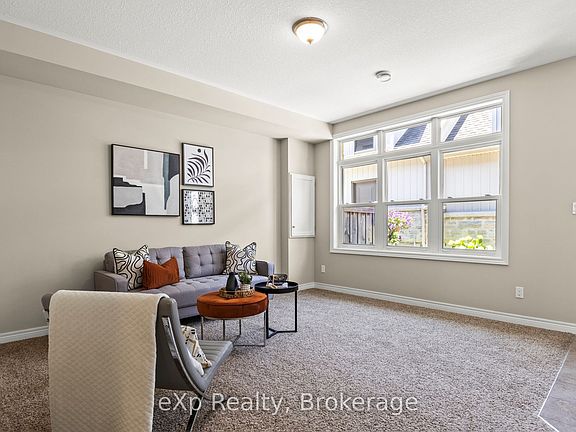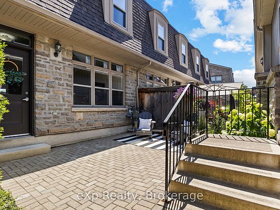 Located in the sought-after Stewart Mill, this upgraded 3-bedroom, 2.5-bath executive townhome includes a double car garage and 4 total parking spaces. The main level features an open-concept kitchen with stainless steel appliances, spacious living and dining areas, a powder room, and a bonus family room. Upstairs, you'll find a large primary suite with a walk-in closet and a luxurious 5-piece ensuite, plus two additional bedrooms, a 4-piece bathroom, and conveniently located upstairs laundry. A private courtyard provides the perfect space for outdoor dining or relaxing. Plenty of storage including large space above the garage and attic access. This downtown oasis is steps from Exhibition Park and the River Walk Trail. With a walk score of 95 and bike score of 79, this location is perfect for those who enjoy an active lifestyle. Just around the corner of your new home you will find the much loved locavore Wooly Pub. Five minutes from the Wooly is an independent bookstore, cafes, boutique clothing stores, family owned Market Fresh and organic Stone Store grocers. A short walk along the River Trail to Sleeman's Centre and The River Run as well as GO train to downtown Toronto.
