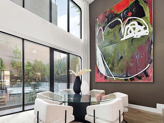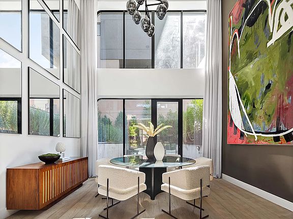 This rare offering is a dream for architectural aficionados and townhouse lovers alike. With a nod to the Cast-Iron buildings of Williamsburg's illustrious and industrial past, and its current investment in the future of modern architecture, three unique brand-new single-family townhouses situated one block from the Williamsburg waterfront and Domino Park are now available for you to call home. Distinguished by their extraordinary molded concrete facades, undulating lines, and oversized curved windows with views of Manhattan and beyond, these homes offer the discerning townhouse buyer the rare opportunity to inhabit a home that embodies comfort, space and light while also investing in the future of cutting-edge construction. Meticulously created from the ground-up by Murat Mutlu, founder and principle of INOA Architecture, and a disciple of the famed Zaha Hadid, these four-bedroom homes are a study in the future of sustainable living, and a rare opportunity for buyers with a desire for a townhouse that turns the typical brownstone vernacular on its head. Created of the most durable materials in the world, concrete and steel, but manipulated to feel intimate and timeless at the same time, these are homes with exciting exteriors, inviting interiors, and indulgent amounts of private outdoor space including landscaped terraced gardens and magnificent roofdecks with water, skyline and Manhattan views. Wide-plank hardwood floors, mid-Century modern designed wood, steel and glass staircases, and windows spanning up two stories with a lush garden view will take your breath away. Enter into a Great Room with double height 22' ceilings just one step up from street level for ease and the perfect flow to your terraced garden. Enter into a magnificent kitchen that has been created of rich materials that lend a warmth to this modern masterpiece. Black-washed custom wood cabinetry paired with unique slabs of Italian Breccia Marble with waterfall edged islands and unlacquered Waterworks brass fixtures enhance the rich and handmade feel of these oversized entertaining spaces. Paneled Miele appliances, deep sinks, designer lighting, great storage and ample counterspace lend an unrivaled practicality. The double height ceiling creates the perfect human connection with the floating living room above, allowing for easy communication between both floors, doubling the size of your entertaining space and allowing light to flood in all day long. The next floor up offers two spacious bedrooms with incredible views of the waterfront. Two full bathrooms on this floor, one ensuite, guarantees privacy for all. The top floor has been envisioned as a grand master suite with extra high 12' ceilings, jaw-dropping views and a walk-in closet. Use the front room on this floor as a nursery/home office or a grand dressing room. Spa-sized bathrooms have all been created with a nod to Mid-Century minimalism, juxtaposing the perfect combination of contrasting white and black mosaic tiles with artisanal hand-made wood vanities with Sahara Noir Marble counters, burnished brass fixtures and lighting, glass enclosed showers and a Primary bathroom with 5 fixtures including a free-standing tub. One more flight up is the fully realized roof deck and outdoor kitchen where you will want to spend all of your time gazing out at the endlessly enchanting views of water and sky. Cleverly masked through an elegant and innovative use of glass fencing, each roof deck feels perfectly self-contained. The English basement level of the home also has floor-to-ceiling windows and a walk-out to yet another terrace. Use this floor as another living room, guest space, studio space or a home office. The great light and indoor /outdoor aspect of this floor is a fantastic surprise. Enjoy a parking garage next door (ten years of free parking!), Domino Park, and world class dining, shopping, and art in literally every direction. One subway or ferry stop to Manhattan.