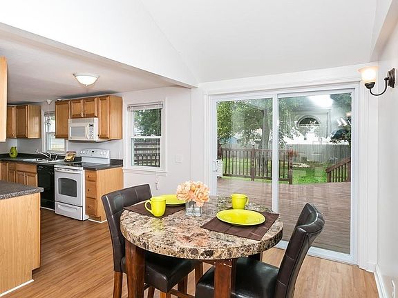 What a great location for this newly vinyl sided 3 bedroom, 1 bath ranch, hardwoods have been refinished, new laminate floor in kitchen and dining area. Dining area has sliders that open up the oversized deck and large fenced in yard, perfect for entertaining. New central air (APO), new microwave (APO) , new toilet (APO), basement has EBB heat and tile flooring, plenty of storage in basement. One car garage.