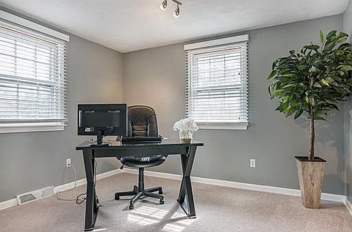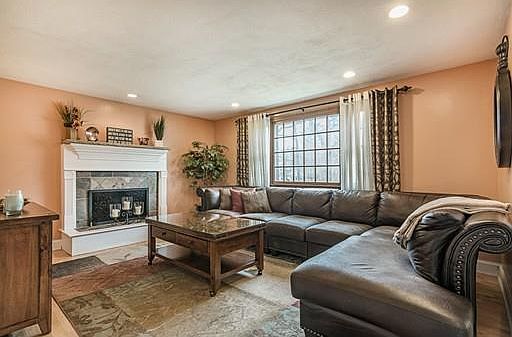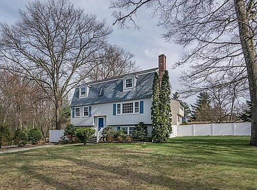 Opportunity Knocks! Come see this bright oversized Split Gambrel Colonial with three full levels of flexible living space. This home features generously sized freshly painted rooms, two full baths, new carpets in the family room, bedrooms and office. Situated on a large corner partially fenced lot, this maintenance free vinyl exterior home is located conveniently close to the commuter rail, shopping, and easy access to Routes 93, 95 and 495. Original kitchen, baths and deck. With some updates and improvements you can make this home your own!