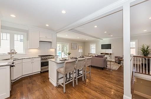 - Kit Dscrp: Main Level, Dining Area, Flooring - Hardwood, Countertops - Stone/Granite/Solid, Cabinets - Upgraded, Kitchen Island, Stainless Steel Appliances, Open Floor Plan, Recessed Lighting, Gas Stove