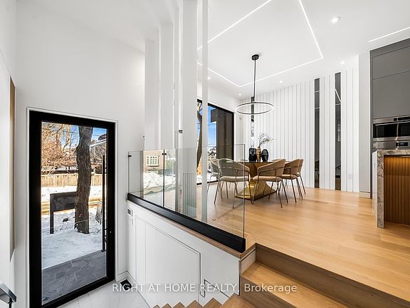 Welcome to 74B Rathnelly Ave - a brand-new, never-lived-in, custom-built luxury home in the prestigious Republic of Rathnelly one of Toronto's most in-demand neighbourhoods, minutes to Yorkville and close to some of the best private and public schools in Canada. A truly rare offering with exceptional design, craftsmanship, and high-end finishes throughout.Featuring German-imported Schüco aluminum windows and doors with triple-glazed glass, wide-plank white oak flooring, and a sleek trimless modern design with drywall-groove detailing. Impeccable interior detailing includes custom wall paneling and millwork, a statement mono-beam staircase, glass railings throughout, and upgraded strip lighting/fixtures.Chef's kitchen with custom-painted cabinetry, premium Sub-Zero & Wolf appliances, and natural stone countertops including Super White. Natural stone carries throughout the home (vanities, basement bar, fireplace), highlighted by a dramatic triple-sided marquee fireplace. Spa-inspired bathrooms feature CariMali Italian fixtures and wall-hung Duravit toilets, plus Italian tile and slab finishes with a strong focus on the Italian-slab basement.Enjoy a two-level, double-height heated basement with large rec room and bar area. Exterior impresses with high-quality linear brick wrapping the sides/rear/walkout, extensive interlock (including interlock driveway), and a standout snow-melt heated driveway, front porch, and rear walkout. Entertain on the composite deck and enjoy a large backyard rarely found in the area. Integrated heated garage (extremely rare in the neighbourhood), two furnaces + two A/C systems, high-efficiency spray-foam insulation, and smart security/speaker system.