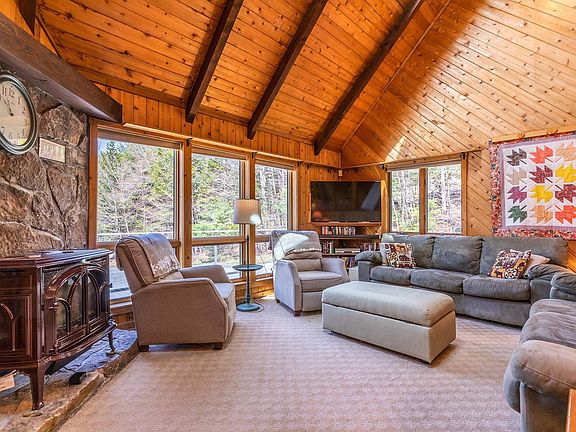 Like the road's namesake, this unique home is nestled at the edge of the woods. A Contemporary design infused with Vermont character, this three bedroom, three bath home on 5.26+/- acres awaits! The easy maintenance property features upgrades that include new composite decking with steel cable railing system and a metal shingle style roof with snow guards. A generous sized solarium-style mudroom welcomes you in from the outdoors. The inviting living space with natural woodwork, mountain views and a stone hearth with gas stove is perfect for Aprs ski or just curling up with your favorite book. The alcove dining space off the kitchen opens to the upper deck for entertaining. The first-floor bedroom is paired with an upgraded bath with glass-framed step-in tiled shower. Upstairs are two en suite bedrooms, perfect to accommodate sharing the property with family and friends. The basement level has been recently remodeled and offers a multipurpose area with adjoining laundry room. Cleverly tucked under the deck is an enclosed space for recreational toys and storage. Access to skiing, kayaking, snowshoeing, swimming and hiking - a wonderful vacation property. 2023-11-05