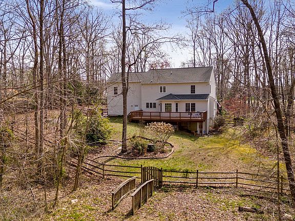 Welcome to your own slice of paradise! This impressive 5-bedroom, 3.5-bath Colonial is situated on 1.66 acres of wooded land, offering exceptional peace and tranquility. As you drive down the long driveway, you’ll note the manicured lawn and you'll feel the stress of the day melting away, and with no HOA, you can bring your camper or boat to park or store without worry. Immediately you’ll notice the generous front porch, where you can picture yourself relaxing in a rocking chair reading your favorite book or just watching the birds and enjoying a cup of joe or refreshing iced tea. Step inside and you'll be greeted by an open floor plan with hardwood floors throughout the main level. The spacious dining room is to the right and passes through to the back side of the kitchen, making entertaining a breeze. The formal living room sits opposite the dining room and gets plenty of natural light from windows at the front of the house. This space could easily be a second family room, large office, or reading room. The heart of the home is the substantial, gourmet kitchen (fully renovated in the last 5 years), complete with upgraded cabinets, hard surface countertops, a custom-built island and breakfast eat-in area. The perfect-sized family room is situated off the kitchen and boasts a cozy gas fireplace. The large deck out back is accessible through the breakfast area. On the deck you will easily find yourself grilling, entertaining or just lounging and enjoying the sounds of nature. Upstairs, you'll find the primary bedroom with a sitting area, two custom walk-in closets, and an en-suite with dual vanities, a walk-in shower, and a separate jacuzzi tub. Three other amply-sized bedrooms and a hallway full bath with a shower/tub combo complete the upper level. The sizable, finished walkout basement offers even more living space, with a fifth bedroom, a full-bath with a shower/tub combo, a rec-room, and storage. Don't miss your chance to own this welcoming country oasis, just 10 minutes from downtown Fredericksburg, which is a whole vibe. There are award-winning restaurants, bars & eateries, cafes, galleries, retail and even a butcher shop. Everything seems like it’s just 10 minutes away. I95 exit at Rt. 17 and the VRE at Leeland Road Station are also just 10 minutes away.