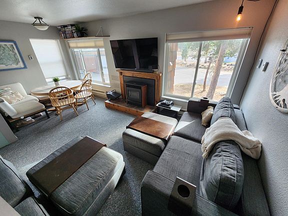 Bright, sunny 2-bedroom, 1 bath corner condo in the heart of the Bear Valley Ski Village. This condo has 2 bedrooms and a full bath upstairs, with the living room and kitchen on the main floor. A newer pellet stove heats the whole unit nicely. Newer flooring throughout. Newer doublke pane windows throughout. This condo is located on the sunny, south-facing side of the building. The Association offers snowplowed parking, a summertime kayak/canoe storage rack, and an owner's BBQ patio. Each unit also comes with a ski locker in the hallway. There is a free, open-source internet connection available throughout the building. Located just behind the Public Safety building, this condo is the closest condo building to the Bear Valley Cross Country trail system. The downhill ski area's free shuttle bus makes a stop a 1/2 block away.