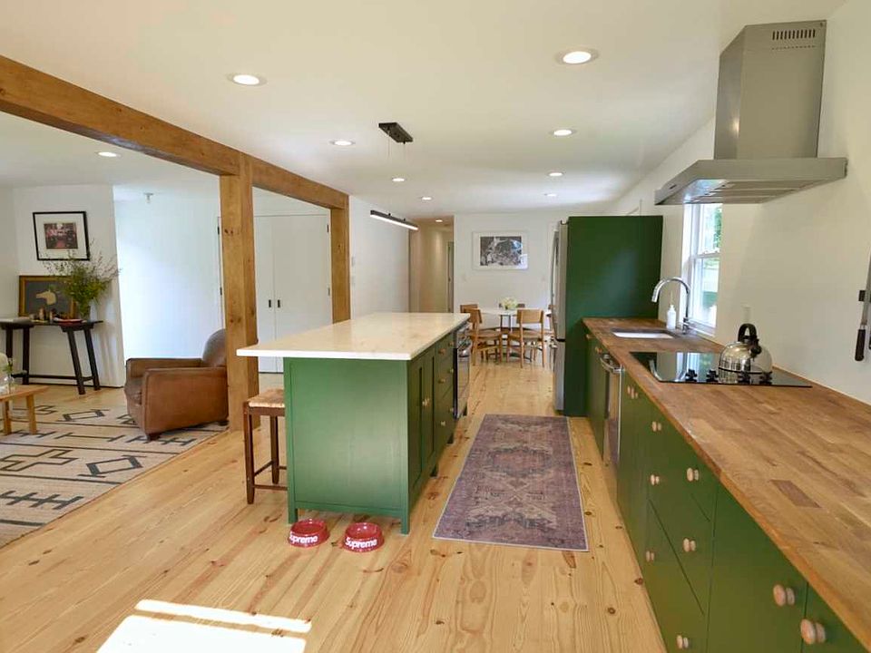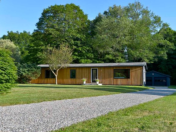 Hip Millerton Ranch ready to move in - Like new construction in the village of Millerton. Expertly gut renovated and thoughtfully designed for modern living. Open floor plan with combined kitchen, living room, & dining area. Kitchen features custom English style wood cabinets, new stainless GE appliances, custom 8ft island with Vermont Danby marble, pantry with electric. Living room with gallery-style 'reveal' baseboards and new large-capacity pellet stove which heats the whole house in winter. Master bedroom with large custom oak barn doors, walk-in closet, and ensuite bathroom. Master bath features marble flooring and custom oak his/her vanity. The main bath features a walk-in glass shower enclosure with Carrera marble tile, Symons fixtures, Venetian plaster walls, and custom oak floating vanity. Other features include, NEW: insulation, select Andersen windows, Douglas fir exterior siding, DWR outdoor lighting, wide plank hardwood floors throughout, plumbing, electrical, and LED recessed lighting on dimmers.