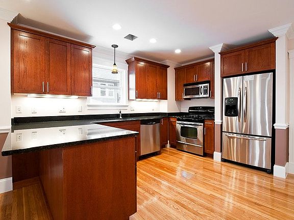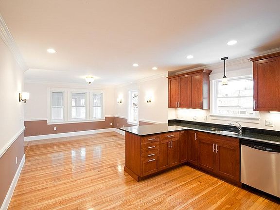 3 bedrooms (one bedroom is a master bedroom), 2 full baths, cherry kitchen with stainless steel & granite counter tops, oak hardwood floors, washer/dryer in the apartment (no coins), central air, California style closet in each bedroom (lots of shelf space), crown molding, front and back decks, storage space, cable/internet ready in all rooms. 2 off street parking spaces Utilities are tenant's responsibility. Landlord is responsible for snow removal and landscaping. Tenant to pay broker fee equal to one month rent.