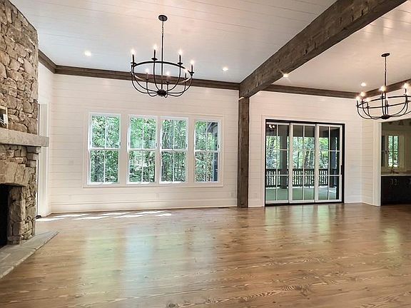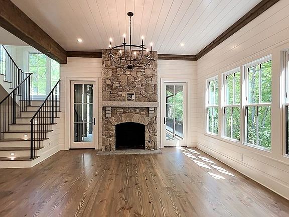 Brand new construction in Mountaintop Golf & Lake Club! Gorgeous 4 Bedroom 4.5 Bath modern farmhouse design on a lovely wooded lot near the Activity Center which has amenities such as a dog park, indoor basketball court, arcade, pickle ball courts, playground with a zip line and more! When you walk in the front door, you are greeted by an open floor plan with a well-appointed kitchen that has custom cabinetry, marble countertops and Sub-Zero/Wolf appliances. There is a full bar with a wine cooler, hammered sink and the laundry has a work sink. The owner's suite has an electric fireplace to keep you cozy on those chilly nights and a beautiful light and white bathroom with glass shower and soaking tub. On the upper level, there is a bonus room with soaring ceilings, an office with barn wood accents and 3 guest bedrooms with en-suite bathrooms. The walls are covered in wood paneling and there are hardwood floors throughout. This home offers 2 outdoor covered living areas: one with a stone wood burning fireplace and a second on the back where there is a gas line installed for your grill. The stone detailing on the exterior, fireplaces and front patio fire fit are simply gorgeous! Mountaintop Golf & Lake Club is a private equity membership family resort-style community where the opportunity for membership is by invitation only. The Club is focused on providing an exceptional North Carolina mountain experience through its outstanding Tom Fazio designed golf course, while exuding the friendly ambiance and genteel charm befitting its Carolina heritage. Members enjoy rustic, yet refined adventures, exquisite cuisine, luxurious Lake Glenville recreation and unforgettable outdoor fun amidst the grandeur and traditions of the Carolina Blue Ridge Mountains. Fireplace Features: 2 or more