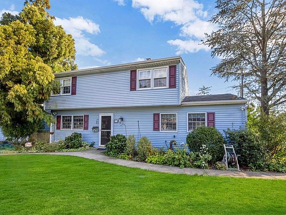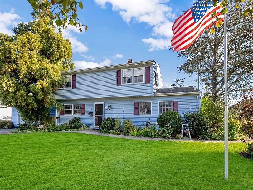 This Beautiful Colonial Style Home within the Levittown School District features 4 Over Sized Bedrooms and 2 Full Baths. The Large Eat-In Kitchen wraps around to a Den/Family Room with Vaulted Ceiling, Skylight, and Sliders to the Large Deck and Professionally Landscaped Yard. The Spacious Living Room with Beautiful Oak Stairway leads to the Formal Dining Room with Sliders to Yard, Oak Flooring Throughout, Plenty of Closet Space and 1.5 Car Detached Garage...All Situated on Oversized Lot.