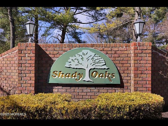 Sought after 'Villa' ranch with bonus 1 car garage. Freshly painted and in move in condition. This lovely end unit is in a private location backing up to grass and wooded area. Inside is freshly painted, bright and airy with vaulted ceiling. Home features 2 bedrooms, 2 full baths. large open living/dining room with wood-burning fireplace, eat-in-kitchen, bonus sunroom with sliding doors open to private outdoor patio. Shady Oaks is an active 55+ community with a recently renovated clubhouse, community pool, and tennis/pickleball courts. Convenient to Garden State Parkway, shopping, restaurants, and other services.