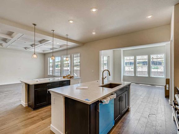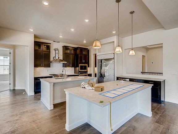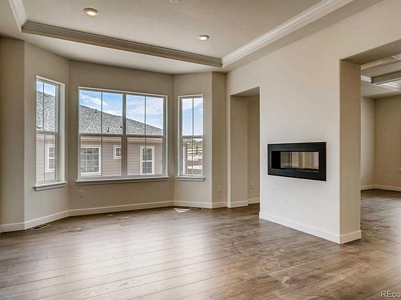 The Ballesteros is a sprawling single-story luxury home that wows! Castle Valley is Castle Pine's newest community with the best location in Douglas County close to amenities like shopping, dining, entertainment, and major traffic thoroughfares. This ranch-style (one level living) home provides plenty of space for the entire family, with three spacious bedrooms each with their own full sized bathroom and walk-in closet, a three-car garage with added storage space for a golf cart or toy of your choosing, an elegant formal study with French doors, lovely dining room that's perfect for entertaining over holidays and special events for years to come, and a quaint covered back deck. The truly gourmet kitchen delights with full stainless steel appliance package with French door fridge, gas range, double ovens, and two massive center islands that make a big statement. The family room is adorned with a decorative coffered ceiling, feature fireplace, and wall of windows that stream in natural sunlight. The main floor master bedroom has a spa like luxury en-suite bath with corner tiled shower, dual vanity, and enormous walk-in closet with direct access to the laundry room. Lennar's Everything Included package has front yard landscaping done for you and this home is loaded with upgrades for a phenomenal value. Visit today to see why everyone loves calling Castle Valley home!