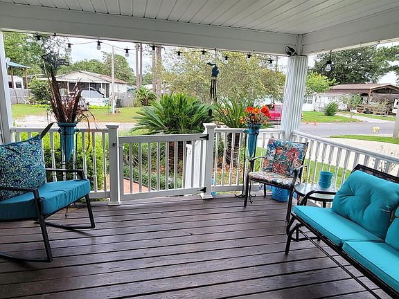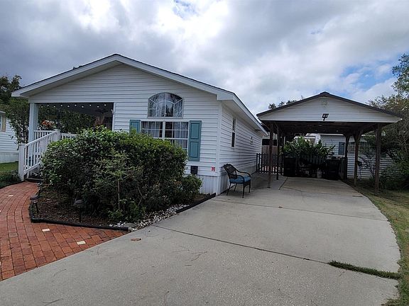 Living in Spanish Cove is a lifestyle. The community offers two clubhouses, Junior Olympic Sized Pool for year-round swimming, fishing pier and beach area on the bay, shuffleboard, tennis courts, fitness facility, 24 hour security, basketball courts, playground and lots of community events! Inside the home you will find two bedrooms, plus a bonus room that could be used as a 3rd bedroom! The interior was remodeled to include a beautiful tile shower in the guest bathroom, granite countertops throughout the kitchen with stainless steel appliances and upgraded flooring and shiplap walls. The primary bedroom is your own suite with a jacuzzi tub and a large closet! NEW ROOF Installed October 2022! The detached building is great for a mother-in-law suite and also includes the laundry room with a half bath. Bring your golf cart and come live the laid back lifestyle!