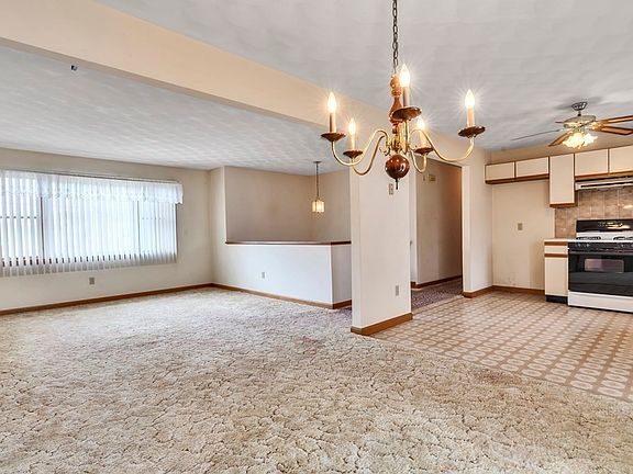 This raised ranch style home offers a well-kept exterior and interior, complete with two levels of comfortable living space.The home features high ceilings throughout, providing a spacious and comfortable living experience. With four generously sized bedrooms and two full bathrooms, this home provides plenty of space for a growing family or for those who enjoy hosting guests.The home is equipped with central air conditioning, ensuring a comfortable temperature year-round, and includes two heat zones, providing personalized temperature control for each level of the home. Two kitchens offer flexibility for entertaining, preparing meals or for multi-generational living. Outside, the home features a fenced-in yard, ideal for children or pets to play. Sliding doors open up to a deck, perfect for outdoor gatherings and relaxation. A detached garage provides ample storage space and convenient off-street parking. The home also has a new roof, providing peace of mind for years to come.