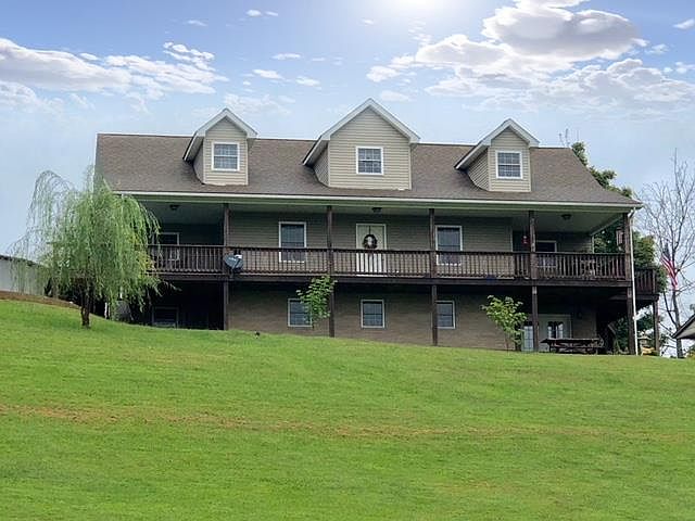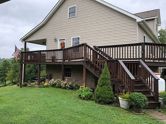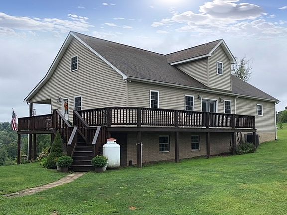 The chickens are included with this amazing farmhouse on 3.6 acres. This beautiful home built in 2006 boasts 4-5 bedrooms, 3.5 bathrooms, master suite with walk-in closet and private bathroom on the first floor, 2 laundry areas, and a 928 sq. ft. family room with an extra kitchen. The outside property includes a large 2 car detached garage, a greenhouse, chicken coop and duck house, wood-burner, shed, above ground pool, fire pit, and a beautiful wrap-around porch to enjoy the amazing views!