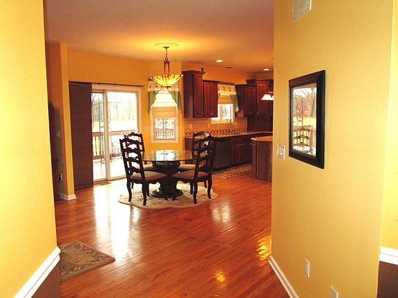 Grand Center Hall Colonial with many upgrades. Gourmet kitchen with granite counters, custom tile floors, center island, double stainless wall ovens, cherry cabinets and tile backsplash. The floor plan is very open, with the firs floor boasting a formal living room with french doors, a formal dining room, large open family room with fireplace and a first floor office/den. Upstairs you will find 4 sizable rooms, including a very large master bedroom with walk-in closets and luxurious master bath. The home also features a very large basement, alarm system, lawn sprinklers and the heating bills are greatly offset by a wood burning furnace that is connected to the household heating system. The yard is very large (over 3 acres) and contains a pool, large shed with 100 amp service and a large deck.
