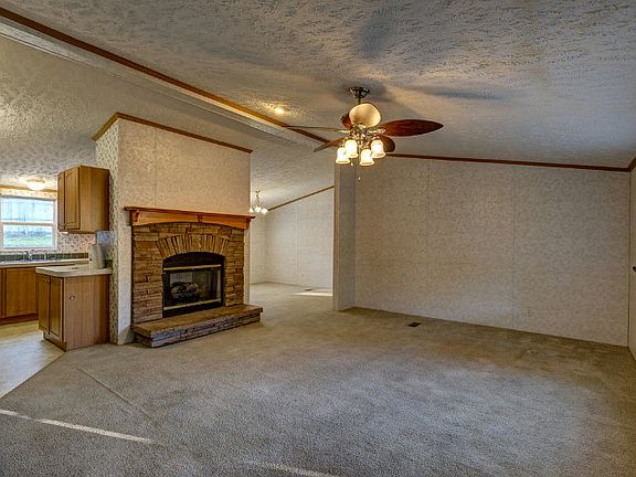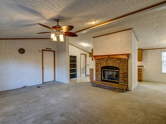 Neat as a Pin! This lovely manufactured home on a creek is the right-sized for easy living! 3+ acres with large yard to enjoy! Wide steps lead to full deck and party porch at the front of the house, plus a second deck off the back door. Heart of the home includes a cozy living room with wood burning fireplace, dining area off the kitchen, with sparkling white appliances and a windowed dining area. Terrific master suite with lavish bath, complete with garden tub and separate shower, twin-sink vanity, and built-in cabinets for storage. Laundry Room and plenty of bedrooms complete the inside. Outdoor shed for tools and toys. OWNER FINANCING available for qualified buyer with 20% down!